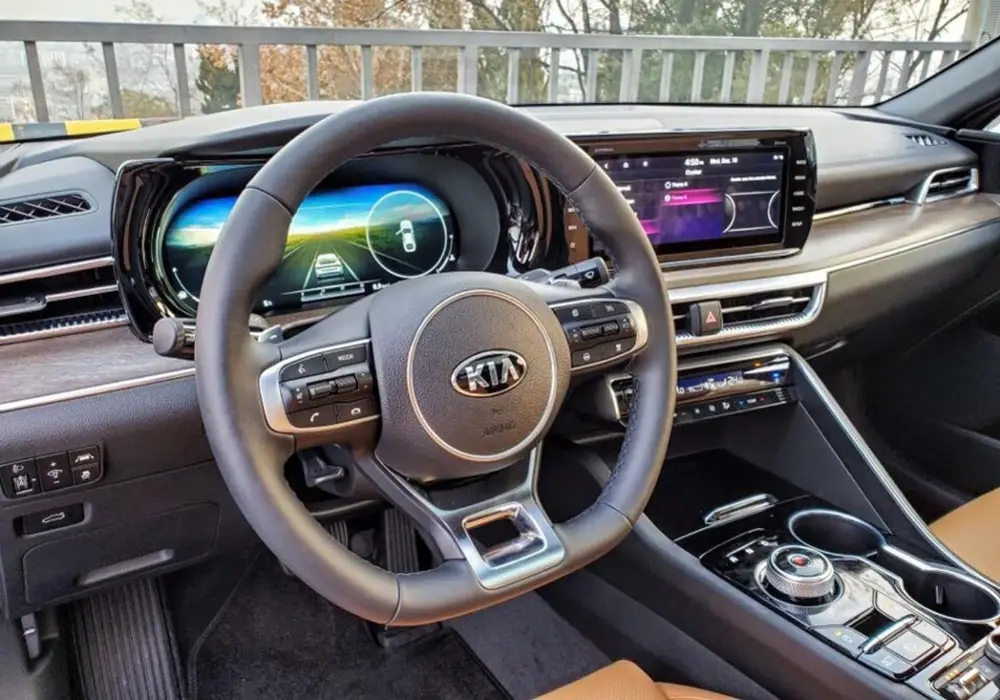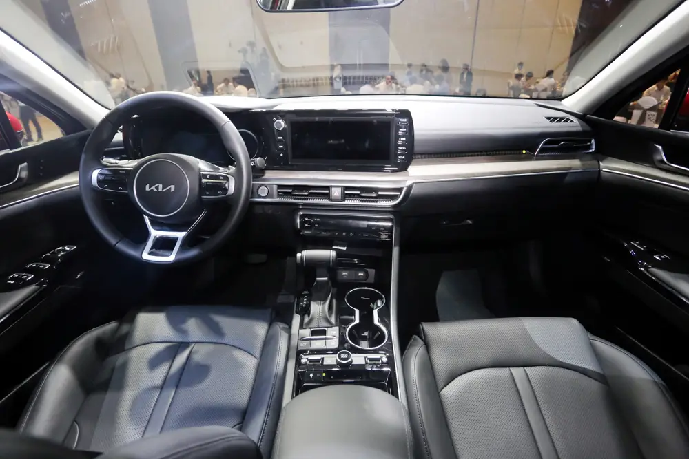 KIA K5 được trang bị màn hình cảm ứng có kích thước 10.25 inch tiêu chuẩn. Hệ thống thông tin giải trí tích hợp Apple Carplay, Android Auto tiêu chuẩn.